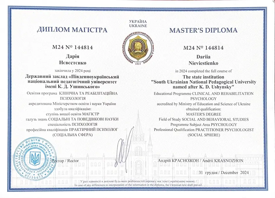 Клінічний психолог, магістр психології